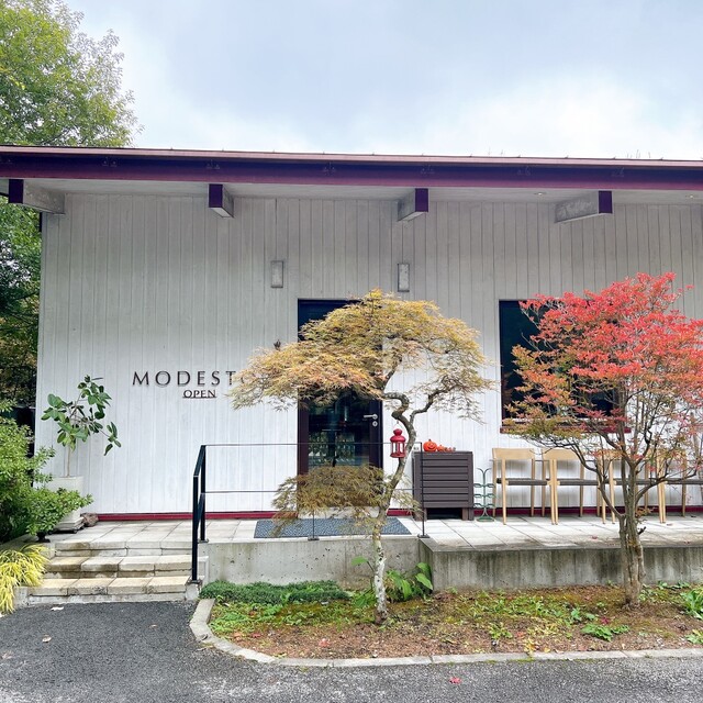 The restaurant is nestled in a quiet location within a forest, just off the main road. The refreshing breeze makes it a perfect hideaway in the highlands, and that's exactly what you can expect at 【MODESTO】. Chef Kota Horiuchi, who honed his skills at the renowned vegetable-focused restaurant 【Kanobiano】 and through experiences in Italy, excels at bringing out the unique flavors of local ingredients. In the beautiful highland area of Karuizawa, the dishes are abundant with fresh vegetables, offering a gentle and healthy taste... |