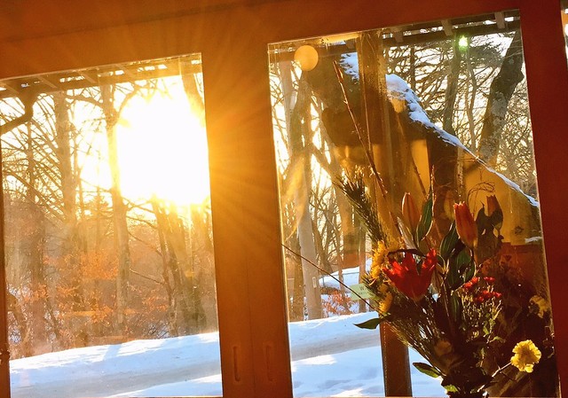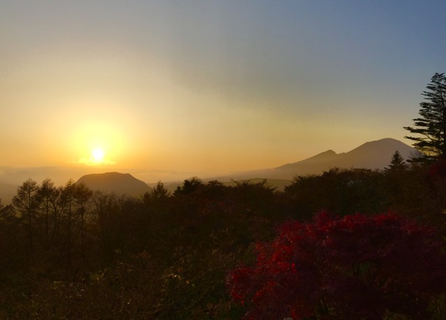浅間山やアルプスが見える向こうに陽が沈みま...(by Restaurant)