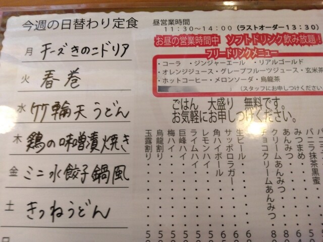 For alcohol orders during night hours only, a service charge of 315 yen (appetizer) will apply. Original text 夜営業のみアルコールを注文の方に限り315円(お通し) This section has been automatically translated. Please check with the restaurant for accurate information. |