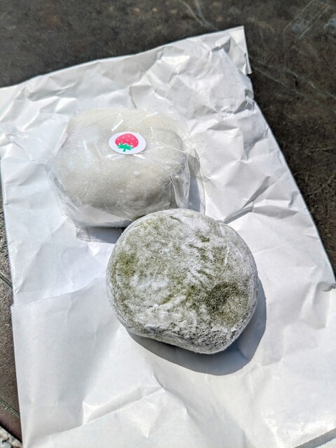At the summit of Rizan, I enjoyed the strawberry daifuku and kusa mochi from Kashi Dokoro Oraga.