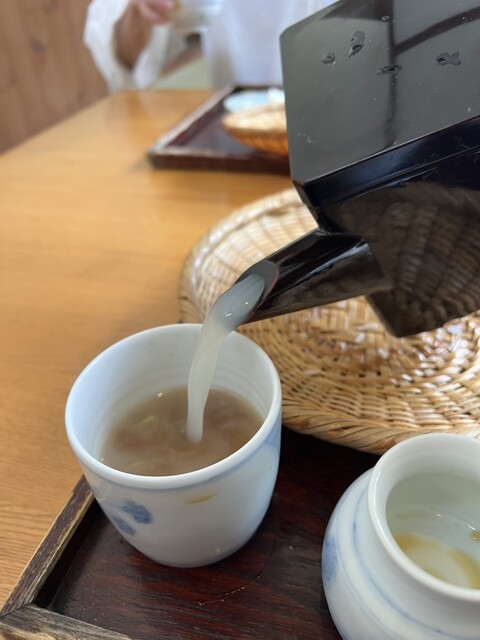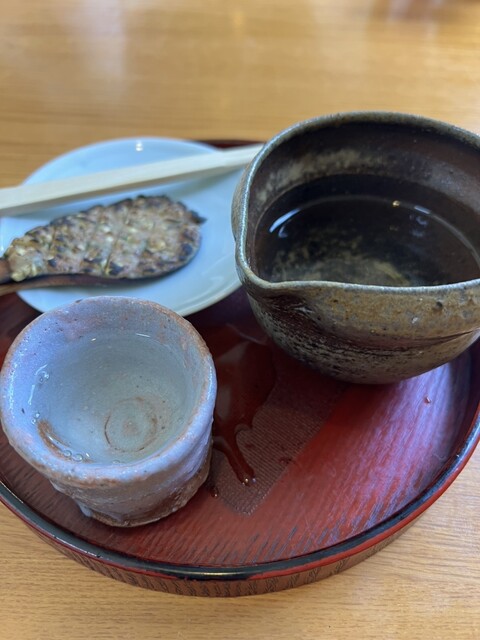 First, I was served grilled miso that comes with the sake. It was presented on a small round tray with a pouring vessel, a small cup, and a cute little ladle of grilled miso.