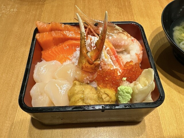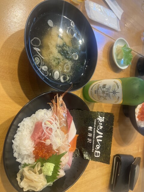 I ordered the most popular seafood rice bowl for JPY 1,800, along with a draft beer and miso soup.
