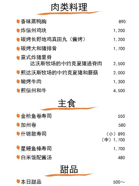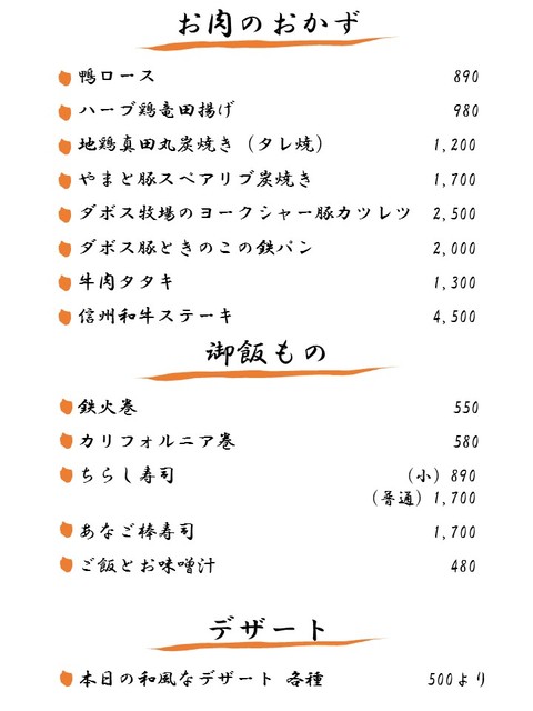 Just a 5-minute drive from Karuizawa Station! We offer organic vegetables from Azumino Inoue Farm, local chicken "Sanada Maru," Dabo's Yorkshire pork, Shinshu wagyu beef, and rice from Nagano's specia...l Milky Queen cultivation. Fresh fish is delivered directly from Toyosu Market and local fishing ports.