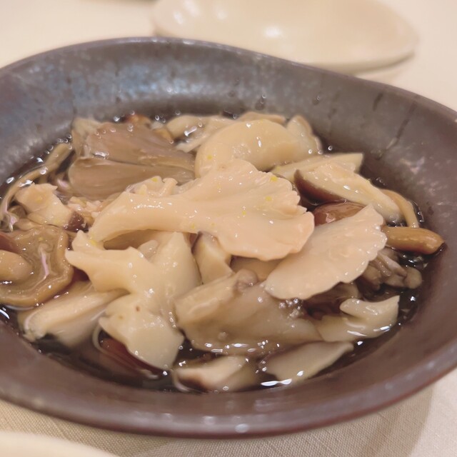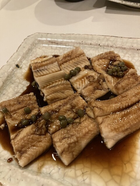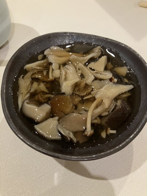 I enjoyed a delightful dish of five kinds of mushrooms, a favorite of mine, simmered anago (conger e...