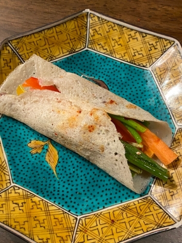 そば粉クレープ 漆器が すてき〜〜(by YR)
