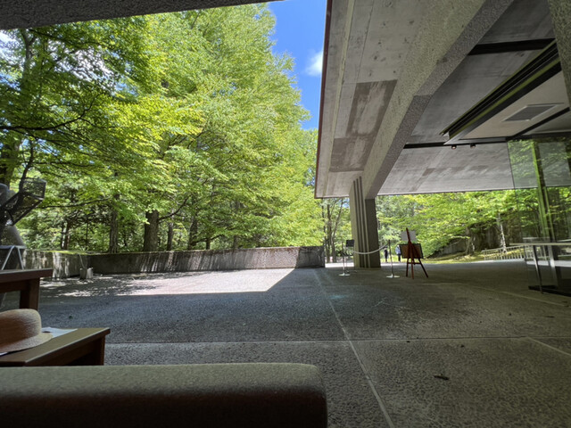 On this day, I enjoyed lunch after viewing the special exhibition "Contours of Land Continuity: Maki Okojima, Hideo Takashima, Yohei Fushiki, and Hiroko Mashiko." The exhibition featured the works of four artists expressing the relationship between nature and humanity through various media and techniques. However, I was eager to enjoy my lunch, so I quickly viewed the exhibit and headed to my reserved terrace seat.