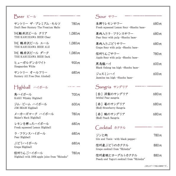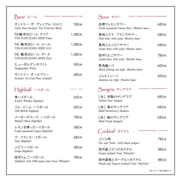 Non smoking Please use the smoking area in Karuizawa Prince Shopping Plaza. |
