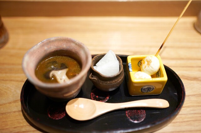 We have a special "Omakase Course" centered around our signature chicken broth chazuke as the finale. Enjoy a peaceful time savoring exquisite dishes in a serene space nestled in the forests of Karuizawa.