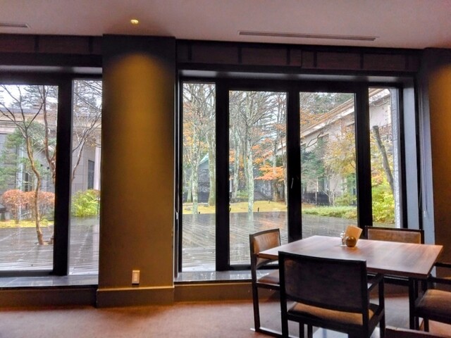 This restaurant faces the courtyard of the former Karuizawa Kikyo Curio Collection by Hilton.