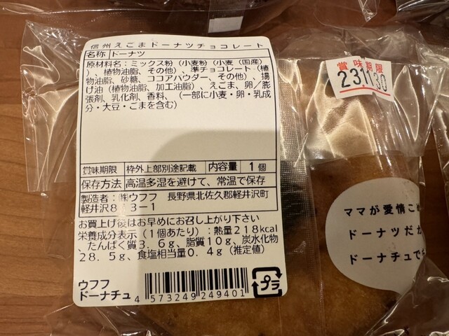 This time, I tried four varieties: "Oe Hama Soybean Kinako" (JPY 300, tax excluded), "Old-Fashioned Lemon Chocolate", "Egoma Donut Chocolate", and "Old-Fashioned Karuizawa Blueberry Chocolate" (JPY 324, tax included).