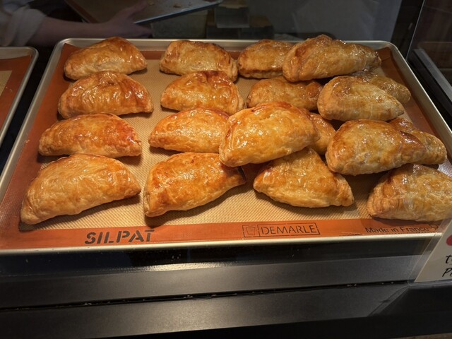 Each pie costs around JPY 600, but they are large and satisfying. The crust is crispy, and the sweet...
