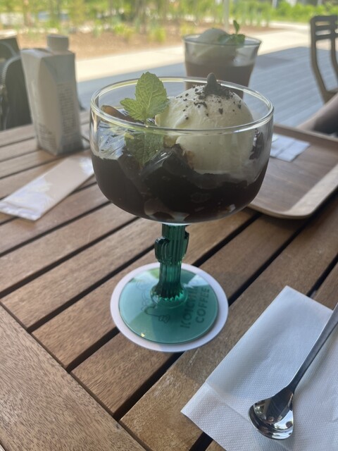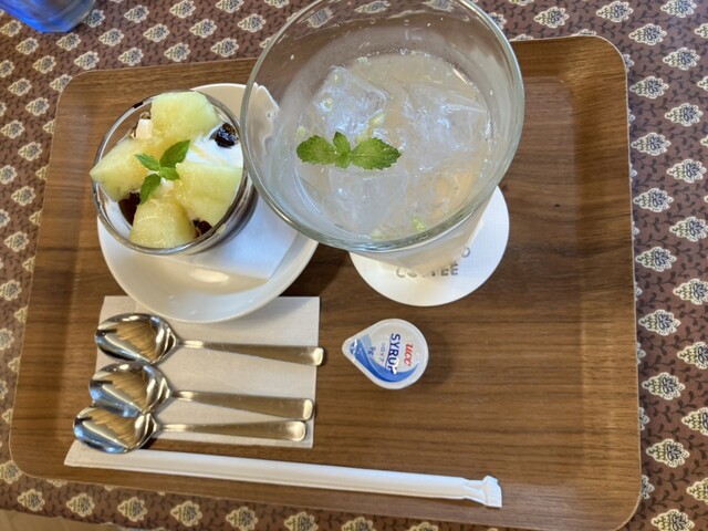 Seasonal special? Melon coffee jelly and early-harvest grape juice!