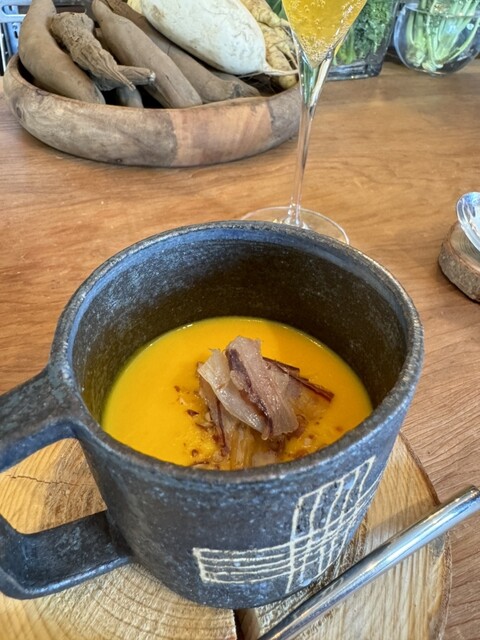 We use game meat and pasture-raised meat. Our mushrooms are wild, and we only use heirloom and non-hybrid vegetables. All seafood comes from natural sources, both from the sea and rivers.Our dairy products come from cows that are fully pasture-raised and fed 100% grass. We offer a variety of non-alcoholic fermented drinks made with kombucha. Most of our dishes and ingredients are either fermented or aged. |