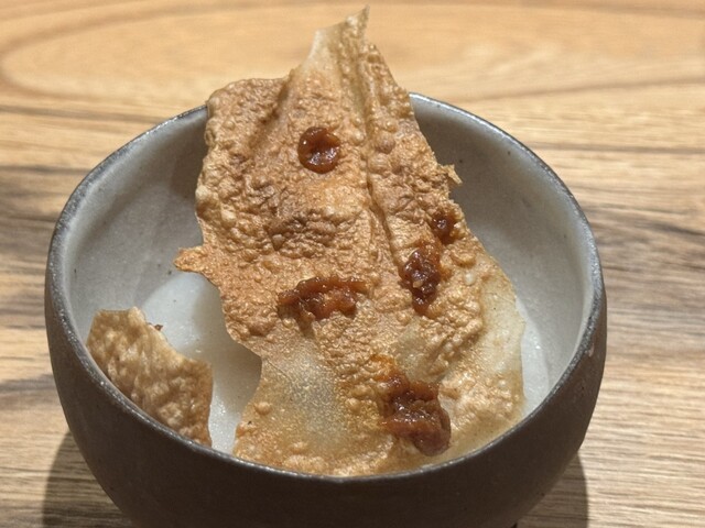 The new soba with charred miso resembles a loose soba dumpling stew. Since it contains no animal products, I was encouraged to eat it with a bamboo spoon. When I forgot it was soba and took a bite, I was pleasantly surprised by its gentleness, with the miso providing a nice accent.