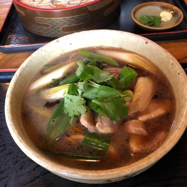 休日の変な時間に6名で利用、並ばずすぐ入れました。メニューも多彩でしたが、私はあったかい鴨のそばをいただきました。鴨肉は分厚くて、満足感あり。味付けもほどよかった。そばもさっぱりとしてて良い。おかわり...