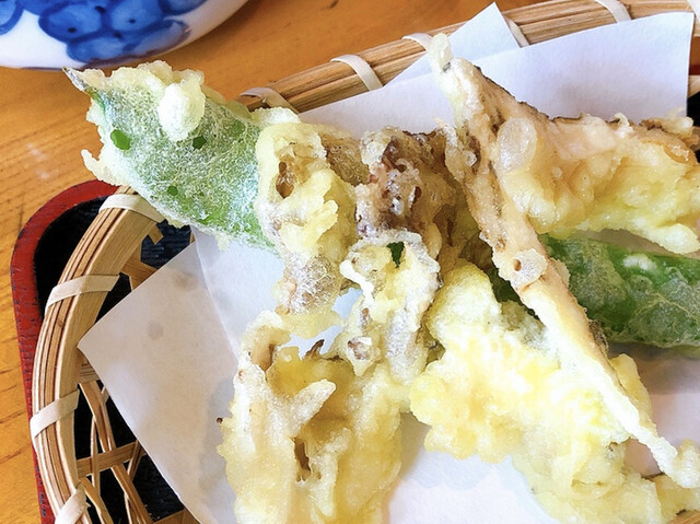 The wild vegetable tempura was rich in flavor, featuring seasonal local ingredients like taranome, u...