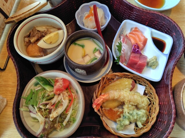 During weekdays, you can enjoy a set meal with sushi at a great price. Since it's from a sushi resta...
