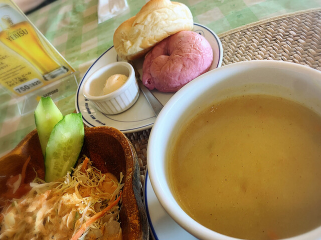 The soup served with the set was delicious.