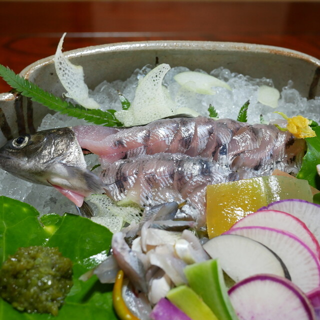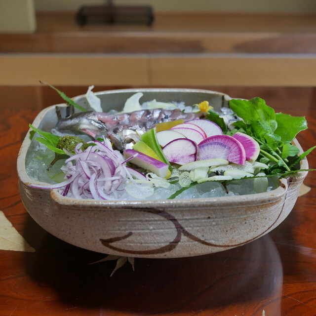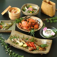 The rich flavors of ingredients brought out by traditional techniques since the Edo period. Enjoy the taste of Tsugani, river fish, and wild vegetable dishes served on Karatsu ware.