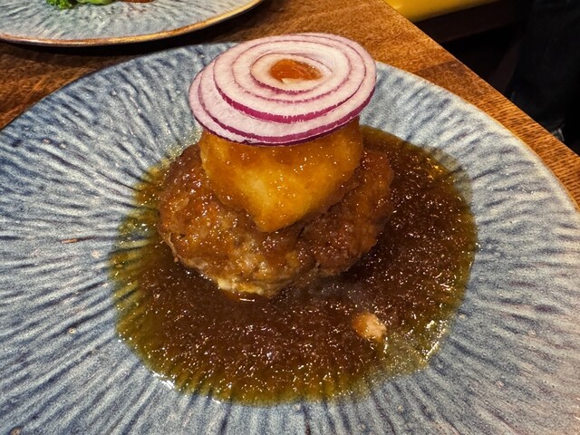 Chef Takashi Watanabe, who won the Minister of Foreign Affairs Award at a French cuisine competition, offers a juicy and tender hamburger that is full of passion. Each burger in this luxurious lineup,... which continues to evolve through thorough research, is simply exquisite. The meat juices that overflow create a perfect harmony of flavors. Enjoying it with chopsticks is a unique touch of my style. The chef's special salad and homemade vegetable juice are also popular, providing a delightful balance of meat and vegetables. If you're in Shibuya, this is a must-try!