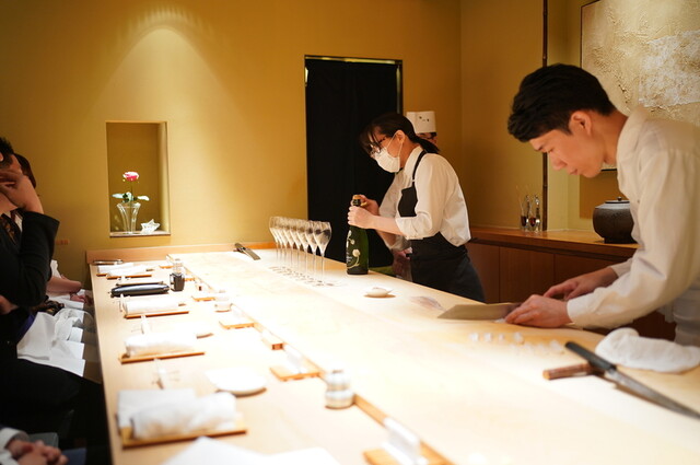 Only the finest fish, sourced from across the country, is used, and no effort is spared in the preparation process. By aging the fish, he maximizes its natural flavors, and only sushi that meets his own high standards in taste, aroma, and texture is served.