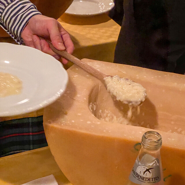 Since opening in 1989 in Ebisu, we have continued to uphold traditional Italian cooking methods, offering our customers a taste of the "good old Italy." We were the first in Japan to serve dishes like... "Risotto served in a Parmigiano cheese bowl" and "Charcoal-grilled T-bone steak," which helped spread the culture of trattoria dining, earning us recognition from the Italian government.