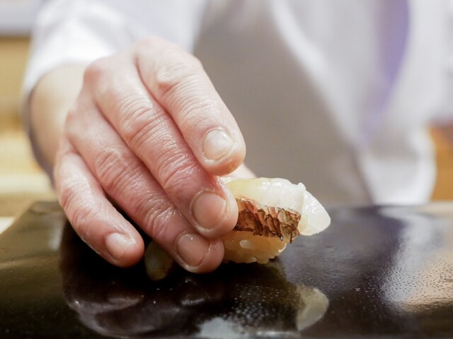 Known for its difficulty in securing reservations, "Nihonbashi Kakigara-cho Sugita" is a sushi restaurant in Tokyo that earned its first Michelin star in the 2017 Tokyo guide. Not only is the quality ...of the sushi and appetizers exceptional, but the warm personality and attentive service of Takahiro Sugita also continue to charm visitors. Standing at the sushi counter, Sugita trained at the long-established "Nihonbashi Kakigara-cho Miyakozushi," founded in the 20th year of the Meiji era. He selects high-quality fish daily from Tsukiji, including lightly marinated Omakase tuna and vinegared Amakusa kohada. He also incorporates traditional Edo-style techniques, using red vinegar and nikiri soy sauce to maintain authenticity. The menu consists solely of the "Omakase Course," featuring a selection of appetizers and sushi. You'll be captivated by the exquisite melt-in-your-mouth sushi and the graceful, efficient movements of the sushi-making process.