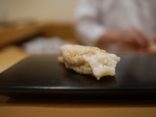 In 2014, promising young sushi chef Hiroyuki Hashimoto, who honed his skills at a renowned restaurant in Nihonbashi, opened his own establishment. While adhering to the fundamentals of Edomae sushi, h...e creates unique nigiri and appetizers. The course menu features expertly marinated, aged, and smoked ingredients, offering a delightful rhythm that keeps guests engaged until the very end. The counter, with only 8 seats, provides an intimate and relaxing atmosphere. Enjoying sake in carefully selected vessels that beautifully complement the hinoki wood adds to the overall experience.
