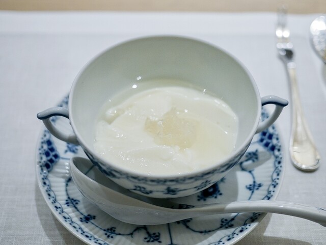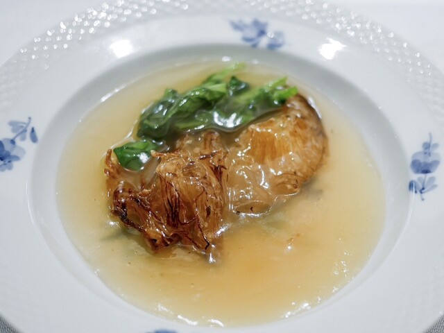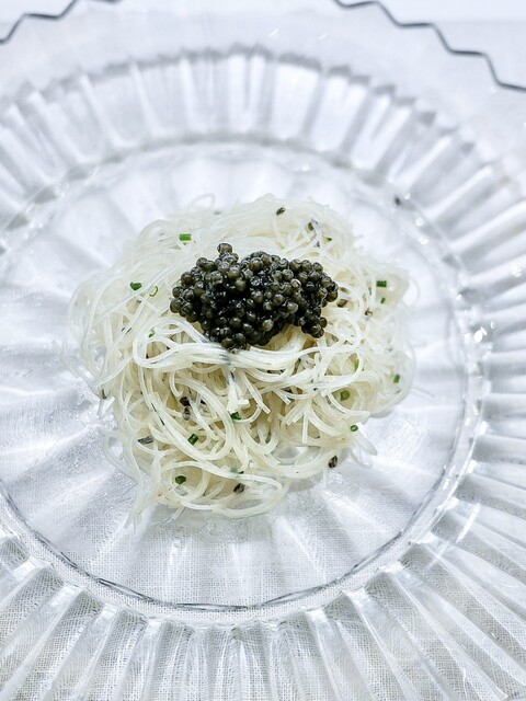 He brought the unique "Chef's Table" style, where he invites just one group of guests each month to his atelier and showcases a variety of ingredients in his dishes, right to Ginza. Guests are treated to luxurious ingredients like dried abalone, shark fin, and bear paw, paired with exquisite wines, all served in elegant tableware and glasses.