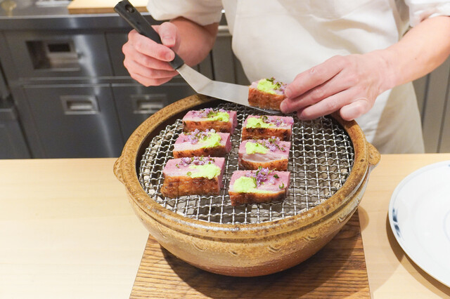 Innovative fusion cuisine that breaks free from traditional cooking methods and ingredients rooted in various cultures. A prime example of this is "Chiu Ne," which has quickly become a highly sought-a...fter restaurant since relocating from Gifu Prefecture. Here, you can enjoy a course meal featuring seasonal ingredients, including a classic consomme soup that highlights the aroma of truffles, all in an intimate space with only six counter seats. This is a must-visit spot for food lovers and anyone looking to experience something special.