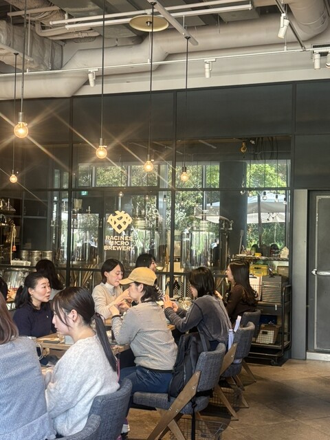 Nestled in the lush grounds of "Nono Aoyama," the all-day dining restaurant "RACINES AOYAMA" awaits you. The original location is the popular bistro "Racines" in Ikebukuro, known for its long lines. I...nside, you'll find a microbrewery and a calm, sophisticated atmosphere with around 50 seats. There's also a spacious terrace with about 30 seats, which is very popular among dog owners.