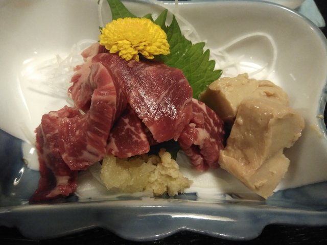 Raw Horse Meat / Kōne (Mane) / Futae-go (Belly Meat) / Mustard Lotus Root
