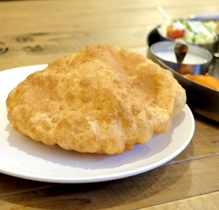 For lunch, enjoy a casual buffet with about four types of daily curries, naan, rice, and more!