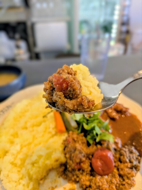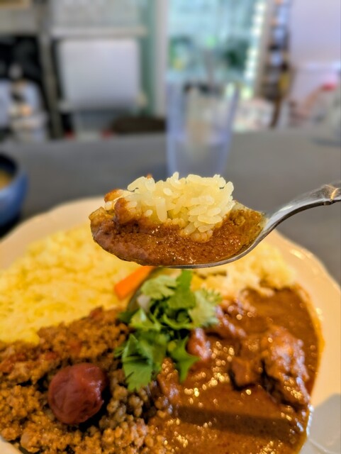 Located at the Gohongi intersection, our restaurant is a specialty shop for spice curry and dishes, marked by its orange neon sign. We offer gluten-free, additive-free spice curry, uniquely adapted fr...om traditional South Indian cooking methods! In the evening, you can also enjoy a variety of dishes that highlight our spices. Pair your meal with carefully selected natural wines from our award-winning sommelier. The interior is a stylish space filled with greenery. We also sell apparel items, so be sure to stop by!