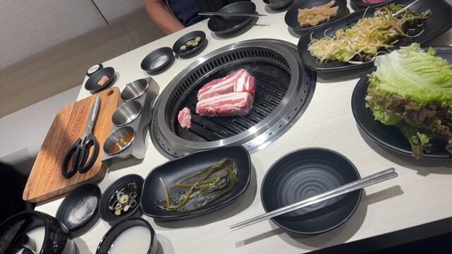 Stylish! The thick, grilled Samgyeopsal is fantastic, and the banchan is delicious too.