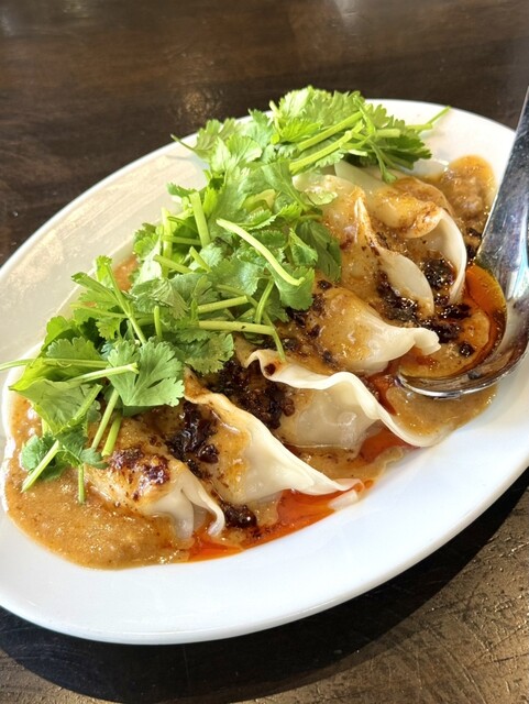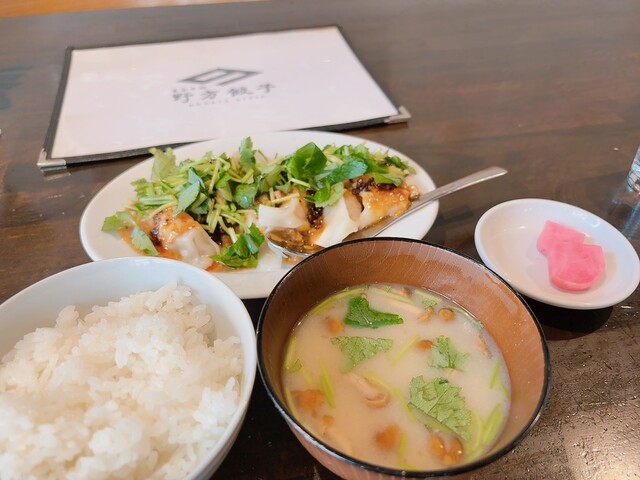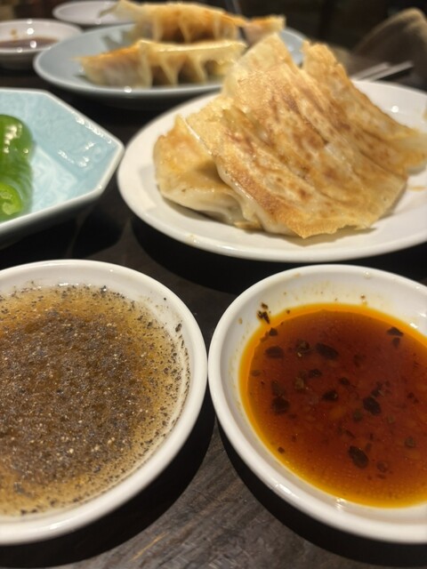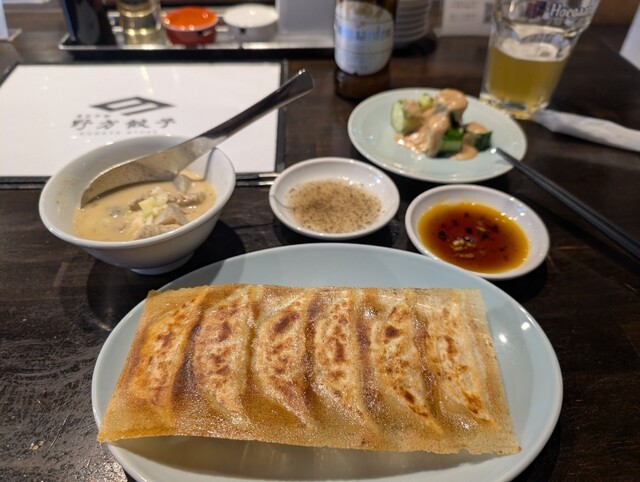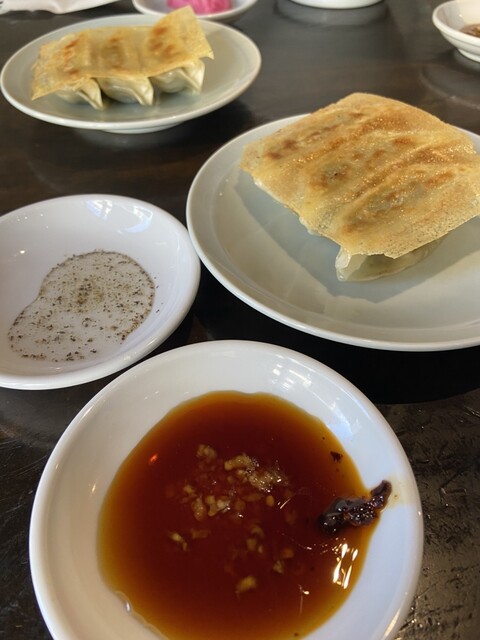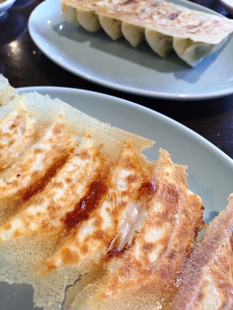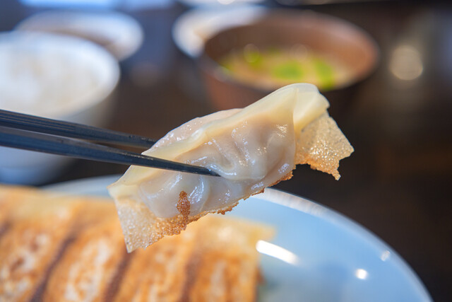 The pan-fried gyoza has a crispy, fragrant bottom, and the flavors of the pork and vegetables inside...