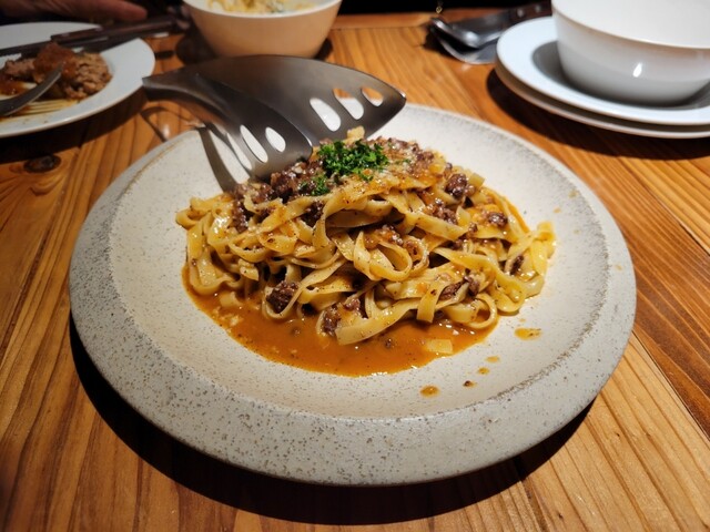 The rich flavor of the Bolognese sauce, enhanced by red wine, pair...