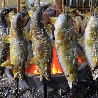 Grilled Ayu Salted on Skewers over Charcoal is a traditional flavor. In winter, we also offer Hōba Grilled Fish and Salted Iwana.