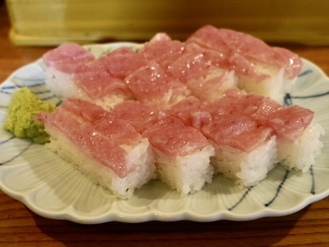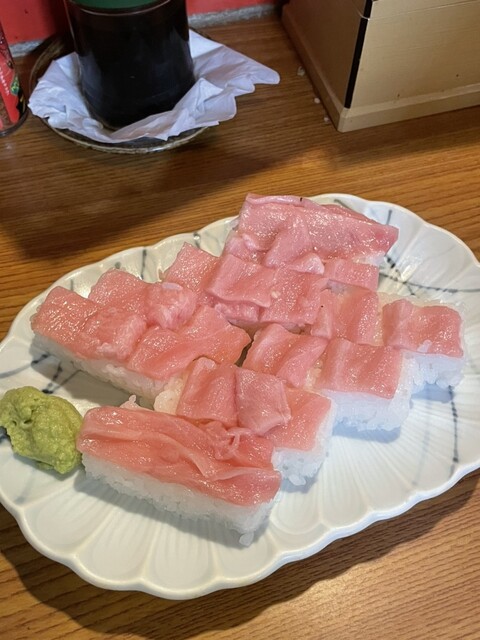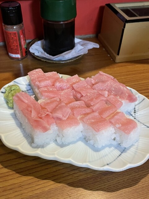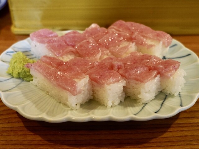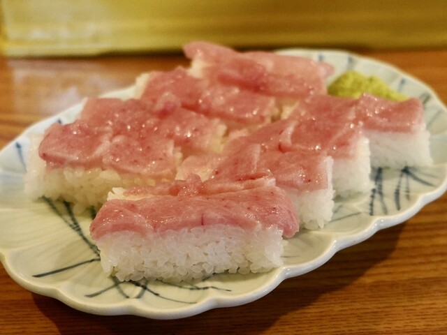 SNSで話題の「とろ押し寿司」を求めての訪問。お目当ての裏メニュー「とろ押し寿司」(1000円)と、豪華なネタが並ぶ「上にぎりB」(1000円)の二つを注文。 運ばれてきた「とろ押し寿司」は、シャリの上に惜しみなくとろが敷き詰められた圧巻の逸品。たっぷりと脂が乗っており、一口食べるととろけるよ... 詳細を見る