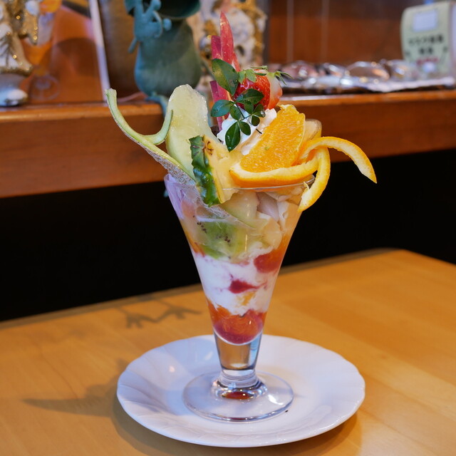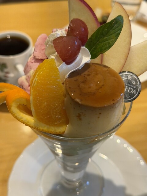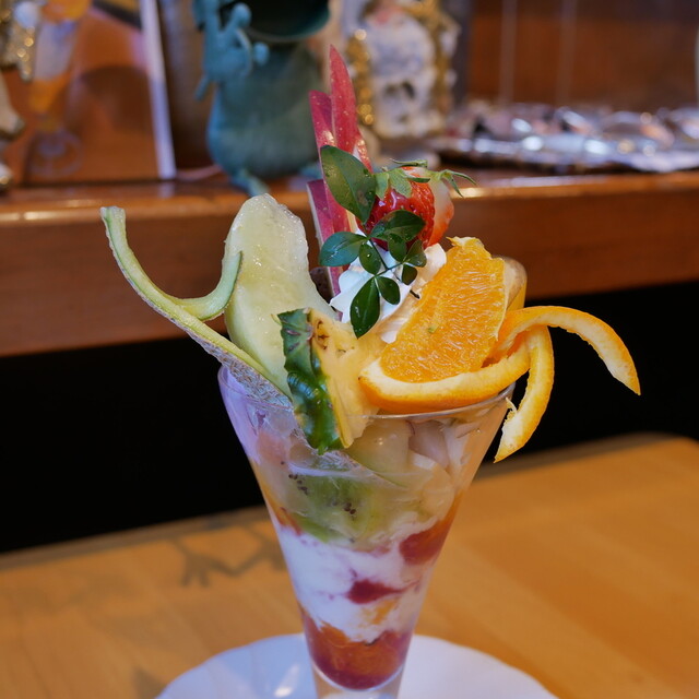 るるぶに載っていた、フルーツパーラー果樹園さんへ初めて訪問しました。フルーツのウメダさんが正式名称なのでしょうか。1階が果物やケーキを販売しているお店で2階が喫茶店でした。