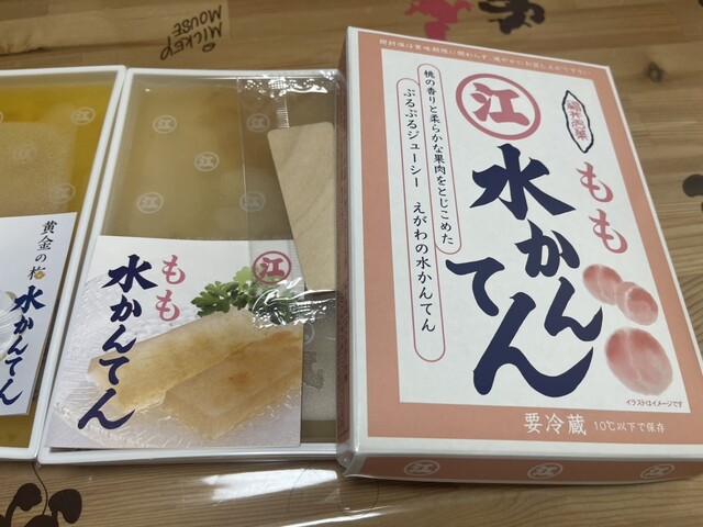 ショーケースの中には「黄金の梅」「もも」「抹茶」 の3種類テイスト...