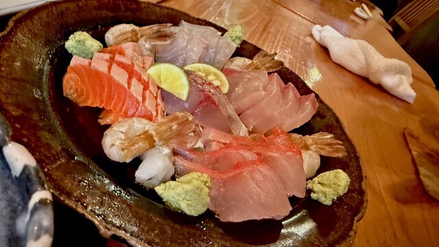 ◆注文メニュー • 鯖のバッテラ寿司 • 刺身盛り合わせ(魚各種) • 牛料理(ランプ、イチボ) • 鶏料理(地鶏、酒蒸し) • 馬刺 • はまぐり • 鯵のなめろう • 天ぷら盛り合わせ • 日本酒・ドリンク各種 などなど他にもいっぱい頼んでます笑 ... 詳細を見る