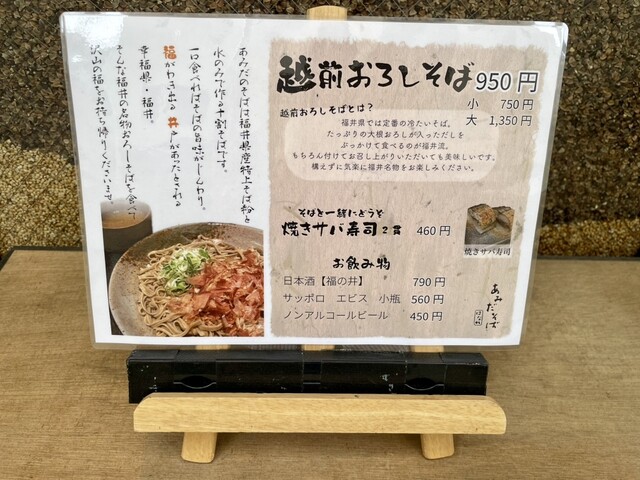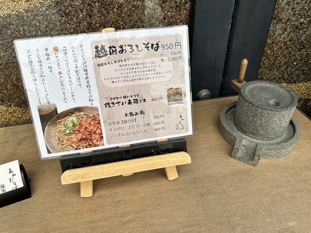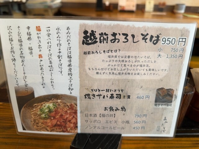 福井県福井市中央にある福井名物おろしそばをこだわりの十割そばで味わうことができるあみだそば♪