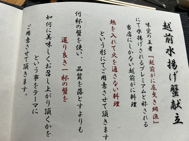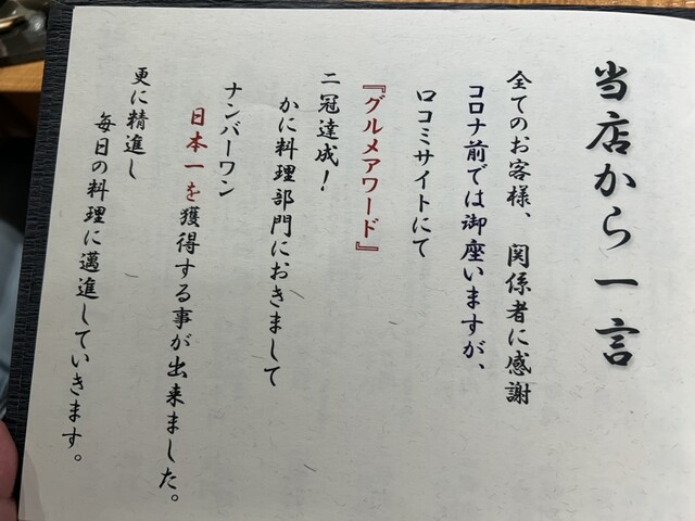 此度 何故このお店を選んだかと言うと、幻の蟹と言われる黄金蟹を提供しているから。