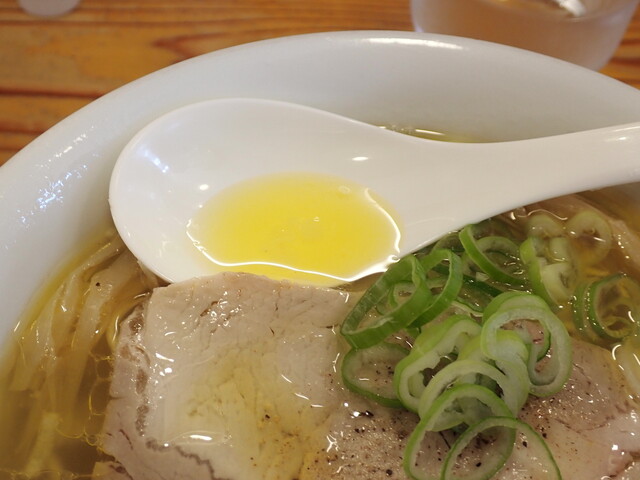 鶏塩スープは鶏油が多めで、さっぱりめな味。