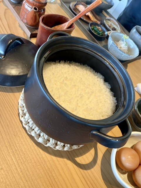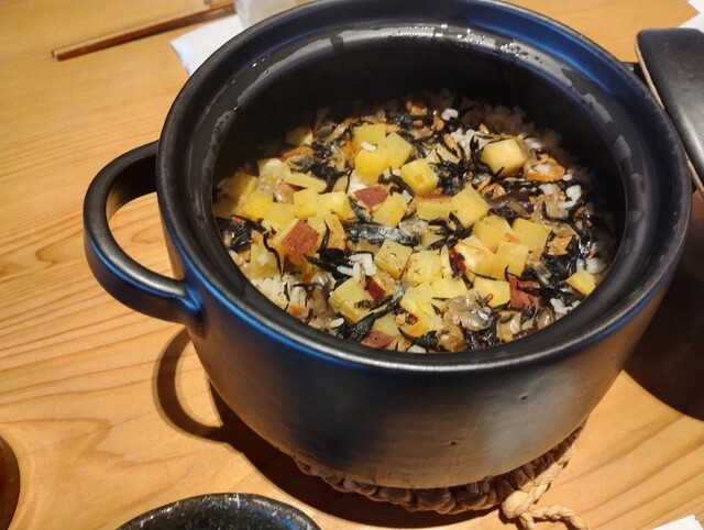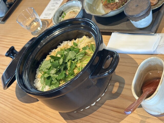 土鍋で炊かれた炊込ごはんが運ばれて、蒸らすのでまだ、蓋は開けないで下さいと言われ、期待大その後...
