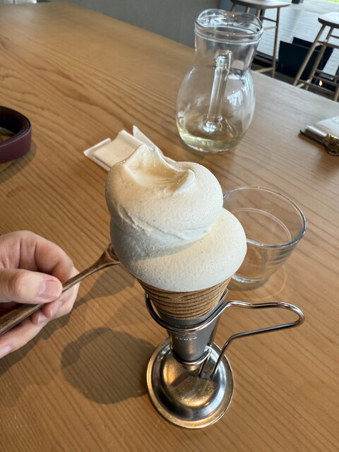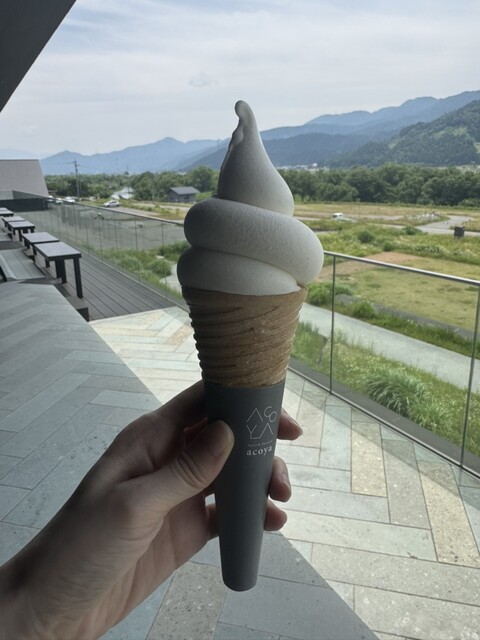 施設内の蕎麦屋さんの後に立ち寄って大吟醸ソフトをテイクアウト。いろんな変わり種ソフトを食べてきましたが、その中でも圧倒的に美味しかったです!お酒が入っているからか、洋酒の効いたショートケーキみたいな味...