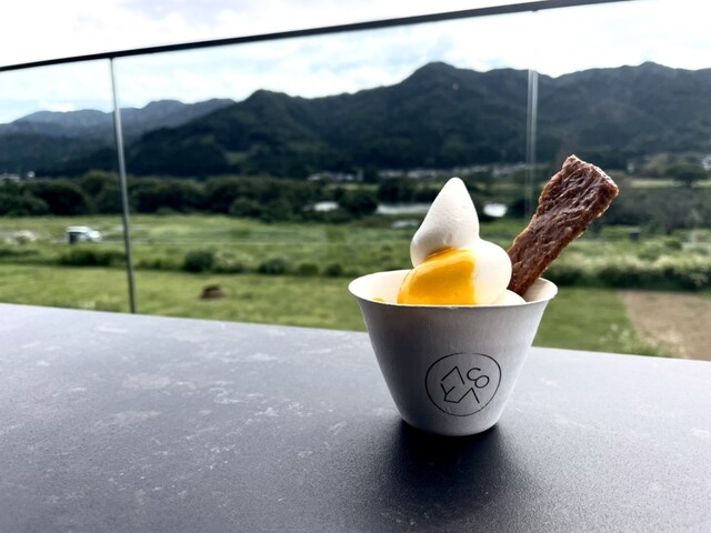 エシトコという施設の一角にあるお店で、大吟醸ソフトを頂きました。大吟醸の風味がほのかに香ります。景色が素晴らしく、カウンターの席に座ると目の前に緑が広がっていました。ランチやカフェのメニューもありまし...
