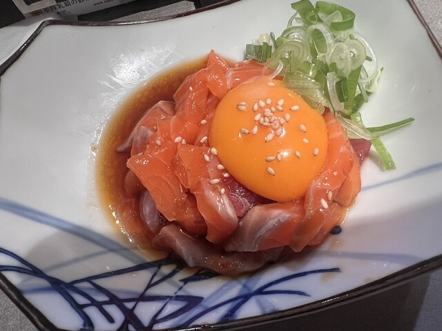 駅ビルのお店は行列、もしくは予約外はお断りの状況で、西に少し歩いてモール内に見つけ、すぐ入れました。 海鮮ユッケ、お作り5品、2品と4杯のお酒でお腹充分になってます。 安くはな... 詳細を見る