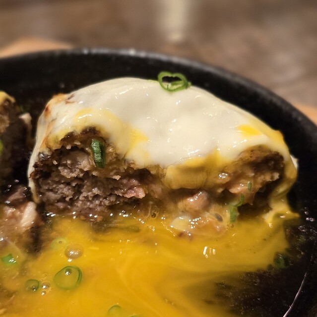 チーズと卵黄に負けない旨味のハンバーグ、オススメです。